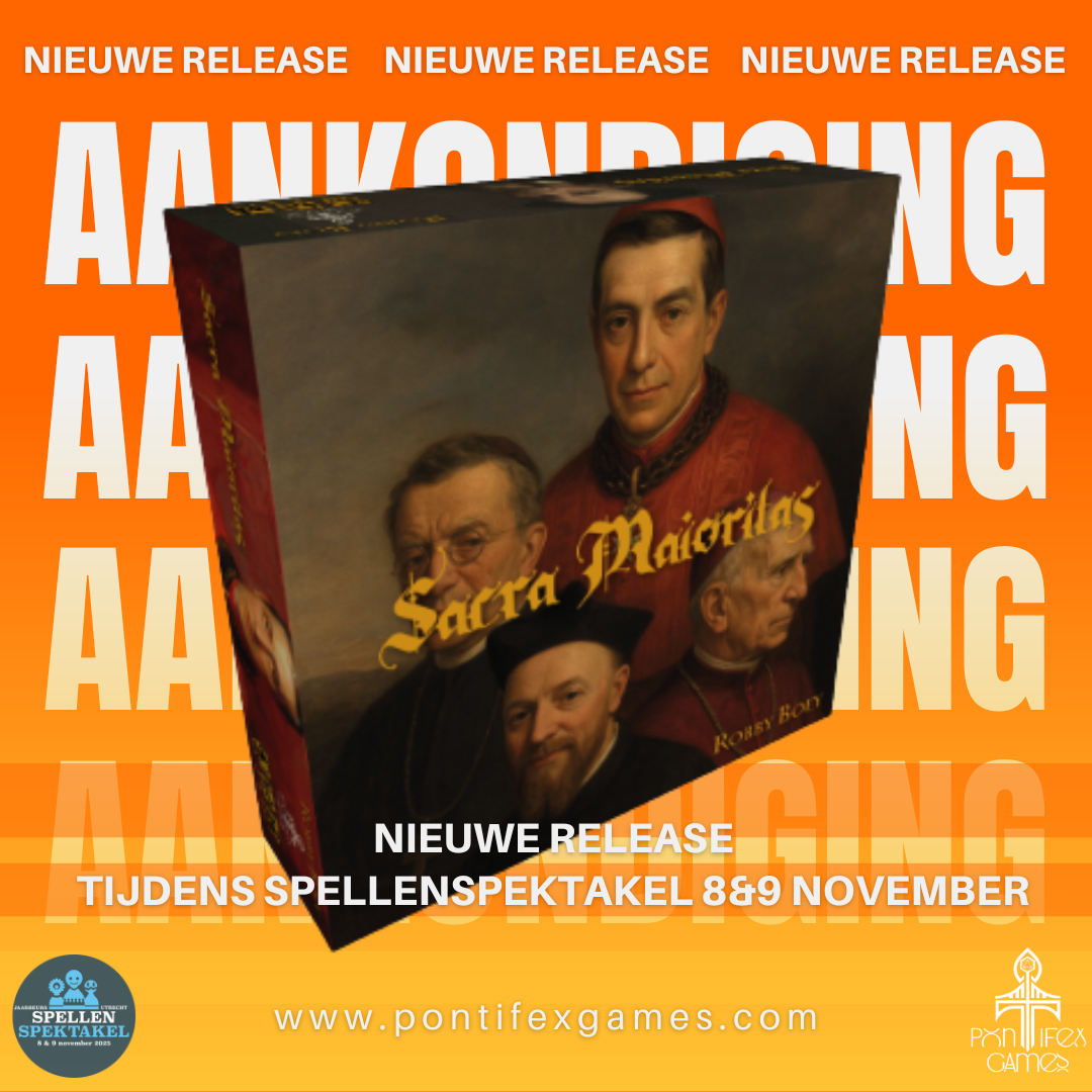 Het nieuwste spel van Pontifex Games wordt voorgesteld tijdens het Spellenspektakel in Utrecht op 8 en 9 november. Vanaf dan is het ook te koop (tijdens de beurs) en via de website. Verkoop via de betere bordspel winkel volgt!